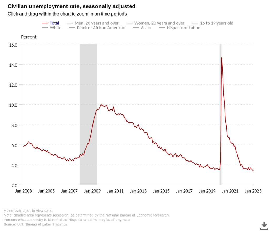 Kurs Bitcoina na poziomie 20 000 USD może powrócić – bezrobocie w USA osiągnęło najniższy poziom od 54 lat