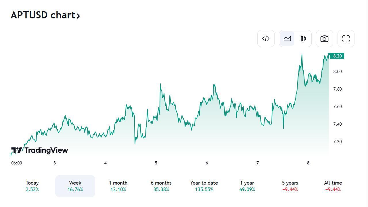 Sukces kampanii w generowaniu szumu przyczynił się do znacznych zysków Aptos (APT), wskazując na rosnące zainteresowanie monetą.