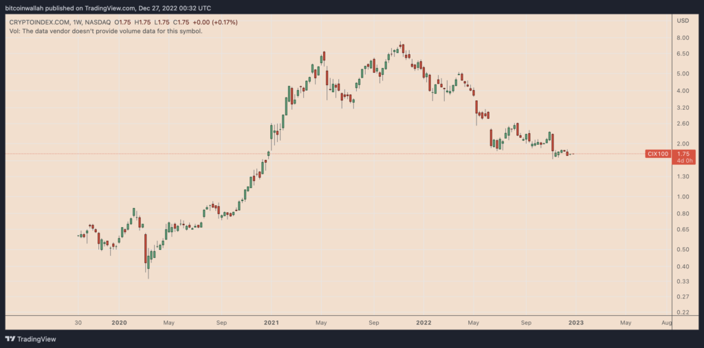 Ogólnie rzecz biorąc, Cryptoindex.com 100 (CIX100), indeks śledzący 100 najlepiej radzących sobie kryptowalut, spadł o prawie 68% YTD, co sugeruje, iż większość najlepszych monet osiągnęła gorsze wyniki w 2022 roku.