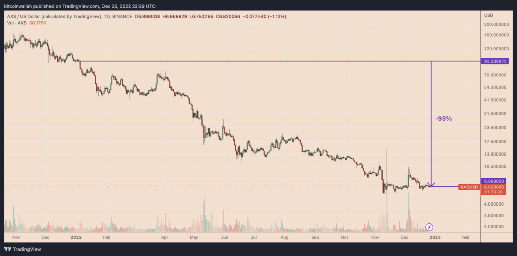 AXS spadł o około 93% YTD, stając się jednym z najgorzej radzących sobie aktywów podczas obecnej bessy.