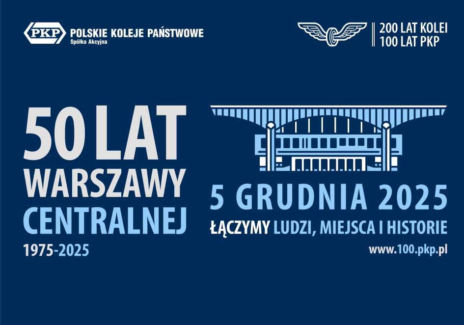 Polskie Koleje Państwowe (PKP SA) zapraszają na obchody jubileuszu dworca Warszawa Centralna im. Stanisława Moniuszki. Program przygotowano na dni 5-7 grudnia – dokładnie w pięćdziesiątą rocznicę uruchomienia obiektu. Stacja rozpoczęła działalność 5 grudnia 1975 r. i dziś obsługuje rocznie ponad 20 mln pasażerów, co czyni ją czwartym dworcem w Polsce, o ile chodzi o wymianę pasażerską.
