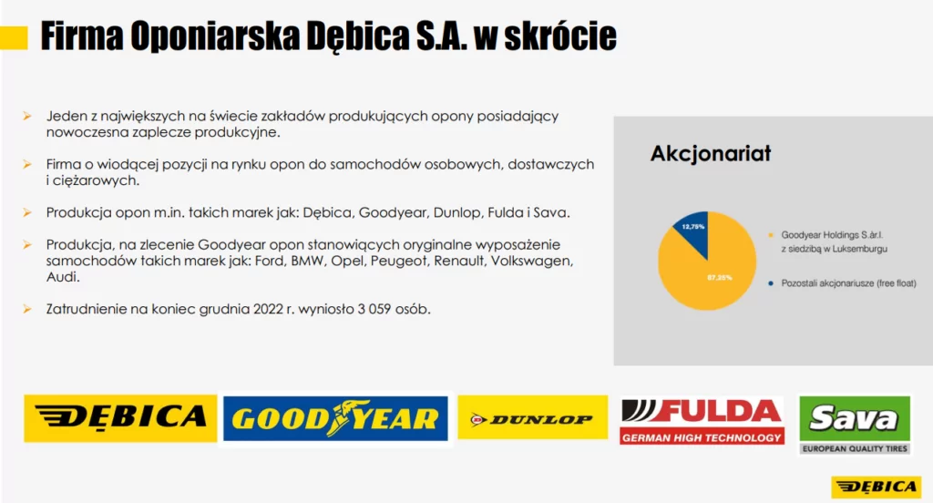 Porozumienie chce także, aby rewident zbadał umowy pożyczek w latach 2018 – 2022 z podmiotami powiązanymi oraz warunki sprzedaży opon do podmiotów powiązanych. Tutaj chodzi o pożyczki udzielane dla Goodyear. Jeszcze 22 maja 2023 roku Dębica udzieliła Goodyear pożyczki na kwotę 150 mln zł oprocentowaną na poziomie WIBOR1Y + 0,45% marży. Jest to zatem pożyczka na bardzo niski procent (przy obecnych poziomach inflacji).