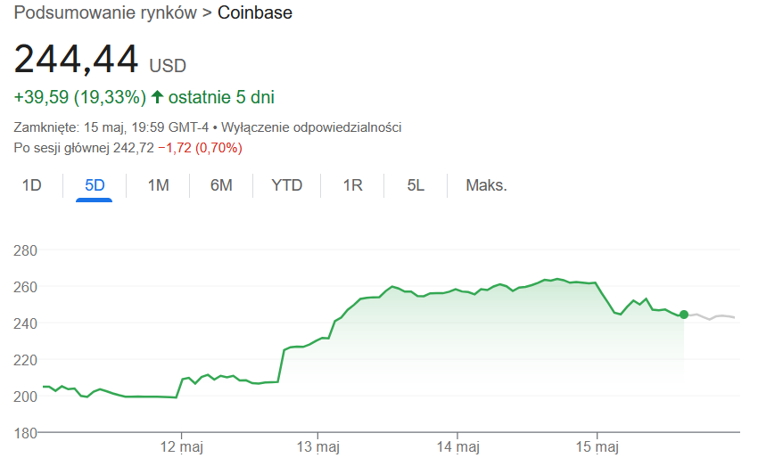 W odpowiedzi na te wszystkie doniesienia kurs Coinbase lekko spadł. Jak na razie jednak rynek nie reaguje szczególnie nerwowymi ruchami.