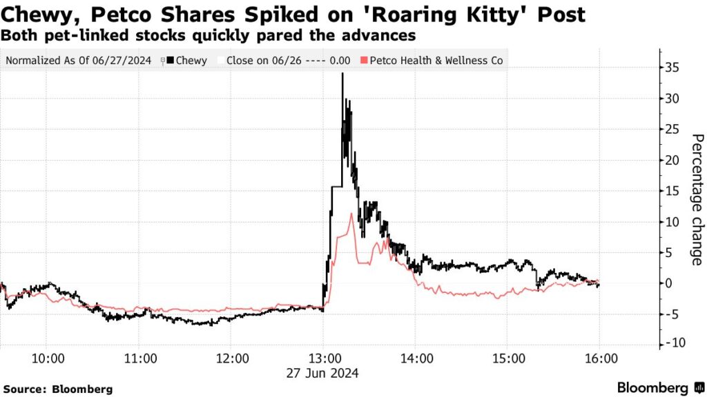 Znany w mediach społecznościowych pod pseudonimami DeepFuckingValue lub RoaringKitty, Keith Gill ujawnił 6,6% pakiet akcji firmy Chewy. Jego pakiet akcji, przed poniedziałkową sesją na Wall Street wart był 245 milionów dolarów, ale chwilę po otwarciu jego wycena wzrosła do ponad 250 milionów dolarów… By później runąć. Przed weekendem walory producentów karmy i akcesoriów dla zwierząt Petco i Chewy także odnotowały potężny rollercoaster. Dlaczego? Wystarczyło opublikowane przez Gilla zdjęcie psa… W mediach społecznościowych.