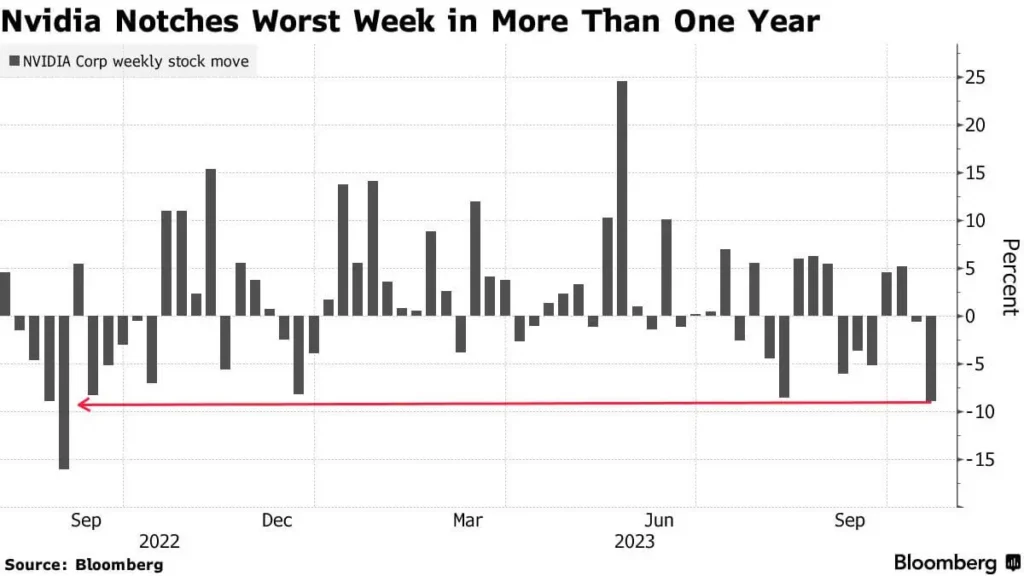 Inwestorzy przez wiele tygodni wyceniali miękkie lądowanie gospodarki USA i brak globalnej recesji. Wraz z wyższymi od prognoz danymi o inflacji, szanse na taki scenariusz maleją. Fed został zmuszony do utrzymania rekordowo wysokich stóp… Prawdopodobnie co najmniej przez pół roku. Oznacza to, iż stres dla gospodarki może być większy, a firmy mogą ograniczać budżety przewidujące wydatki na sztuczną inteligencję. Oznacza to prawdopodobne skurczenie rynku zbytu dla takich firm jak Nvidia, czy SuperMicro Computers, których wyceny odzwierciedlały już i tak 'skrajny optymizm’ względem przyszłych przepływów pieniężnych. Po Ethereum Merge Nvidia nie może liczyć także na dodatkowe zakupy kart graficznych ze strony górników ETH, ponieważ kryptowaluta zmieniła metodę consensusu na PoS.