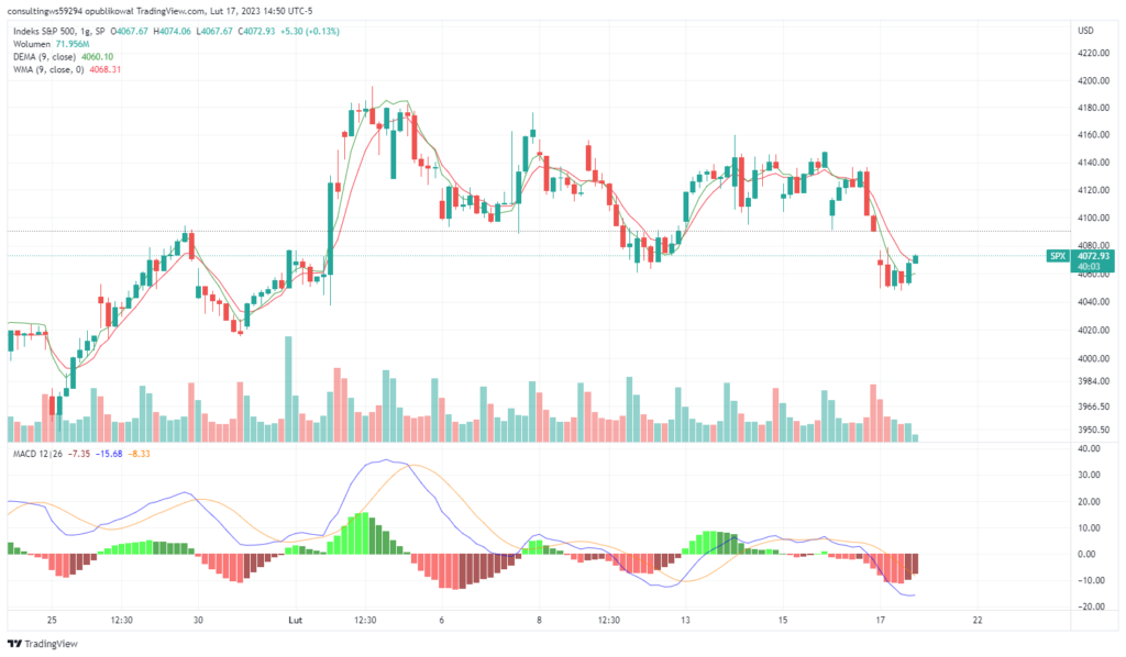 Z drugiej strony, akcje na Wall Street odnotowują spadki, ponieważ dodatkowy czas, jaki inwestorzy mieli na ocenę wtorkowego, cieplejszego niż oczekiwano raportu CPI, oraz bardziej jastrzębi ton ze strony przedstawicieli Rezerwy Federalnej osłabiły impet na rynku. Na zamknięciu w USA indeksy S&P, Dow i Nasdaq zakończyły czwartek niżej niż zaczęły, odpowiednio o 1,38%, 1,26% i 1,78%. W piątek spadki były mniejsze ale indeksy zakończyły sesję na minusie.