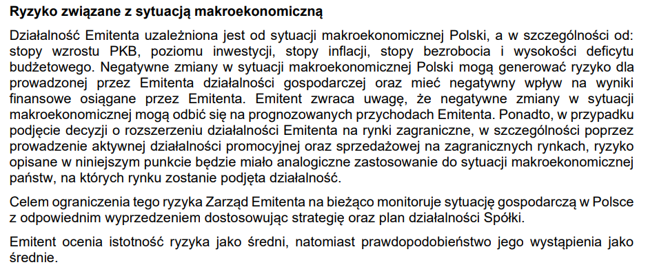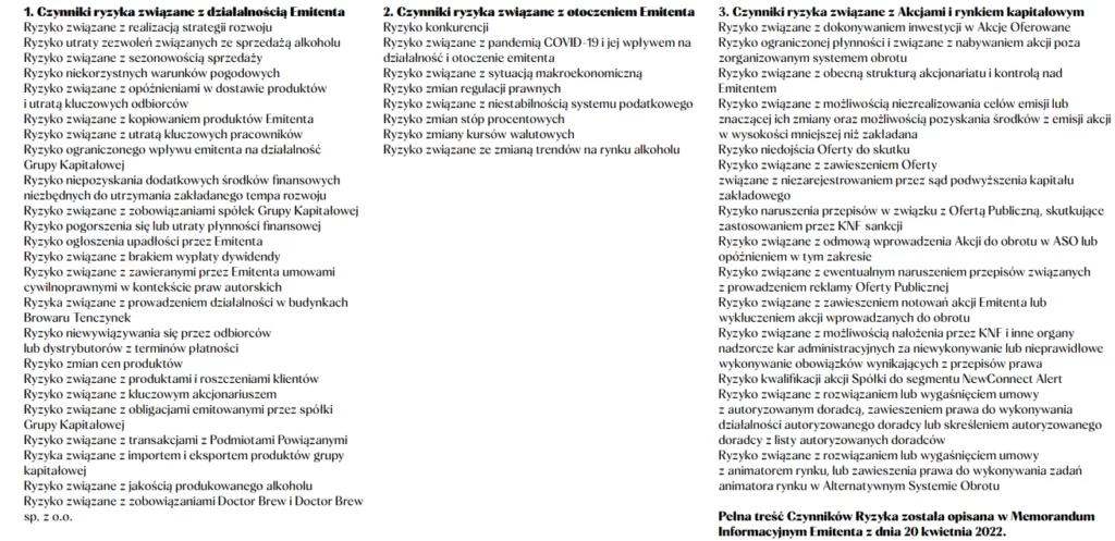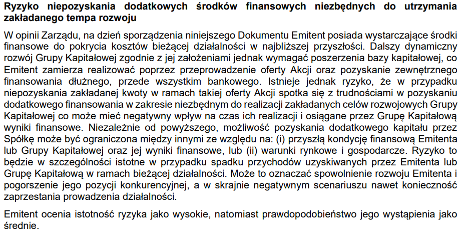 Ryzyka wymienione w dokumencie IPO. Źródło: MPWiW IPOPodsumowanie