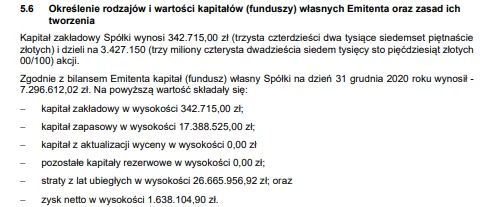 Kilka stron dalej w Memorandum z marca 2022 czytamy, żę kapitał zakładowy spółko wynosi 342 tys. PLN wobec wymienionych wcześniej 550 tys. PLN Źródło: Memorandum MPWiWSytuacja finansowa w 2021 roku