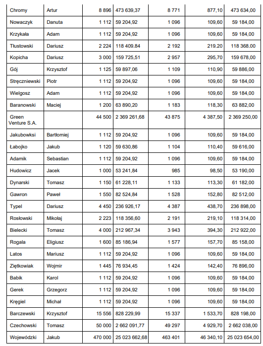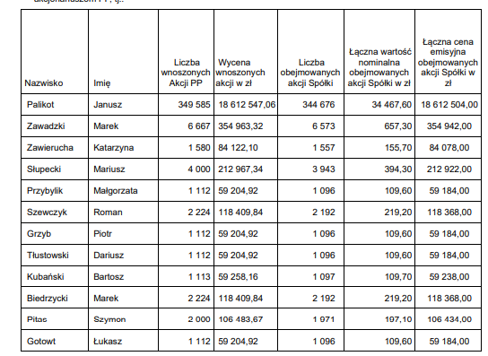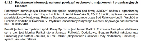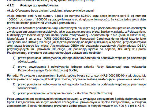 Źródło: Memorandum MPWiWUprzywilejowani akcjonariusze ze znacznymi udziałami, w tym spółka Kresy z.o.o. gdzie w zarządzie widzimy żonę Janusza Palikota, Monikę Palikot. Aquamore i Manufaktura 1 skojarzone z Tomaszem Nietubyciem.