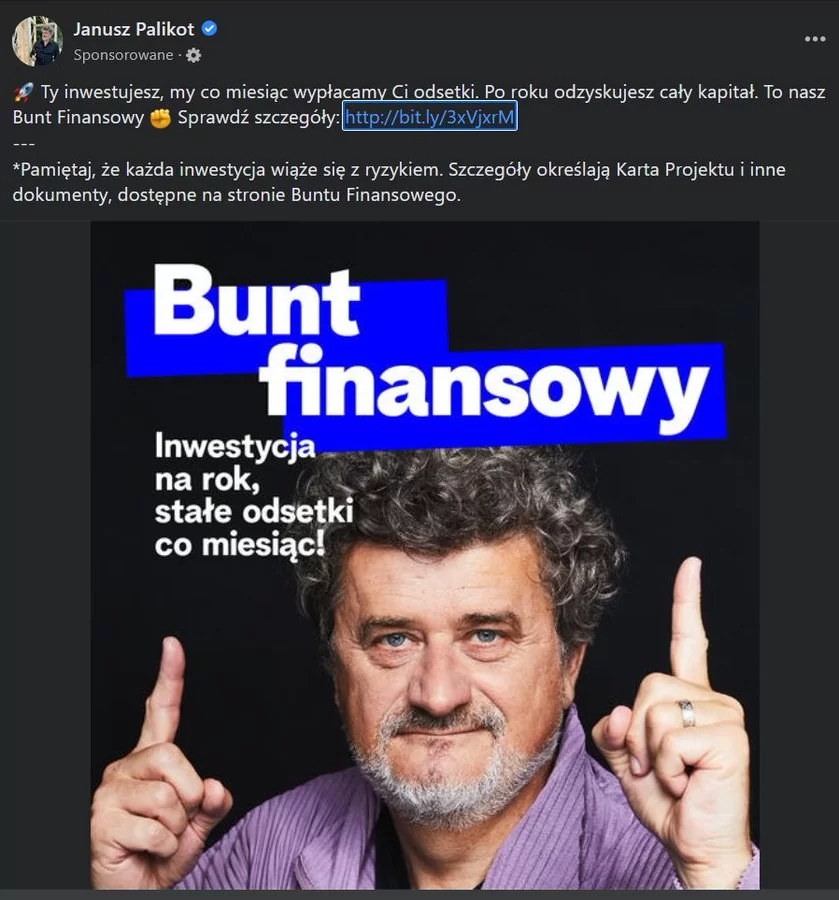 - Palikot ruszył z potężną kampanią. Na przestrzeni lat z kopyta zebrał 140 milionów złotych od tysięcy inwestorów. W mediach roiło się od filmików i zdjęć – z Wojewódzkim, Stramowski czy Warnke. Nie wskazano, iż perspektywa rentowności całej grupy stoi pod olbrzymim znakiem zapytania i obarczona jest wysokim ryzykiem. Informacje zamieszczane prze grupę były przeważnie bardzo ogólne w tonie ’Pamiętaj, iż inwestowanie obarczone jest ryzykiem’;