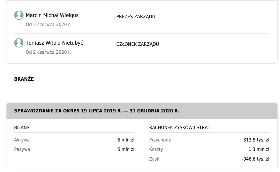 Źródło: Rejestr.ioCo więcej spółka miała oferować akcje także dziennikarzom czy blogerom w zamian za marketing. Jednym słowem szukanie przysłowiowych frajerów. Jak można interpretować obecność Nietubycia w zarządzie MPWiW i jaką wartość miał wnieść on do grupy? Czy Janusz Palikot nie zapoznał się z jego CV? Dlaczego dobrze działające, rentowne biznesy nie muszą wychodzić z ofertami finansowania długiem do inwestorów na rynku prywatnym? Zamiast tego mogą liczyć na giełdowy debiut i rzeczową wycenę biznesu lub prowadzić go poza regulowanym rynkiem, bez mamienia tłumów inwestycją w kurę znoszącą złote jaja. Chciałoby się rzec, iż zarówno Etno i MPWiW łączy taka 'polskość’, prawda? Trochę jak K.S Tęcza z filmu 'Miś’.