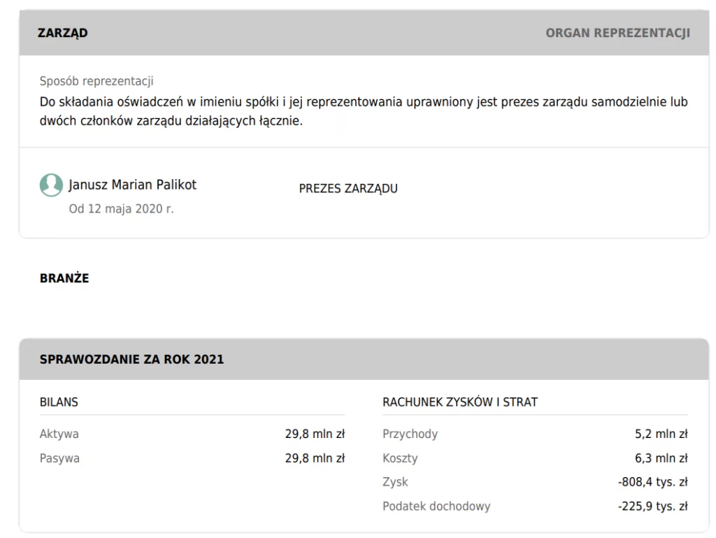 Bilans i rachunek zysków/strat Alembim (za rok 2021). Źródło: Rejestr.ioMoce kontra polski rynek