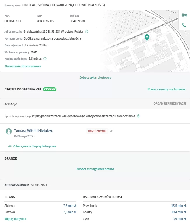 Biznesy na rynku prywatnym charakteryzuje przede wszystkim utrudniony i 'niedemokratyczny’ dostęp do do danych finansowych. Prezes Nietubyć uznał prawdopodobnie, iż papier wszystko przyjmie wpisując Etno Cafe S.A. do swojego okraszonego rzekomymi sukcesami CV. Czy na pewno Etno Cafe – słynny kawowy startup powinien być powodem do dumy? A może przeciwnie, jego obecność w CV powinna być raczej czerwoną lampką dla inwestorów? Sieć jest w restrukturyzacji od połowy 2022 roku. Chciałoby się rzec 'nieszczęścia chodzą parami’.