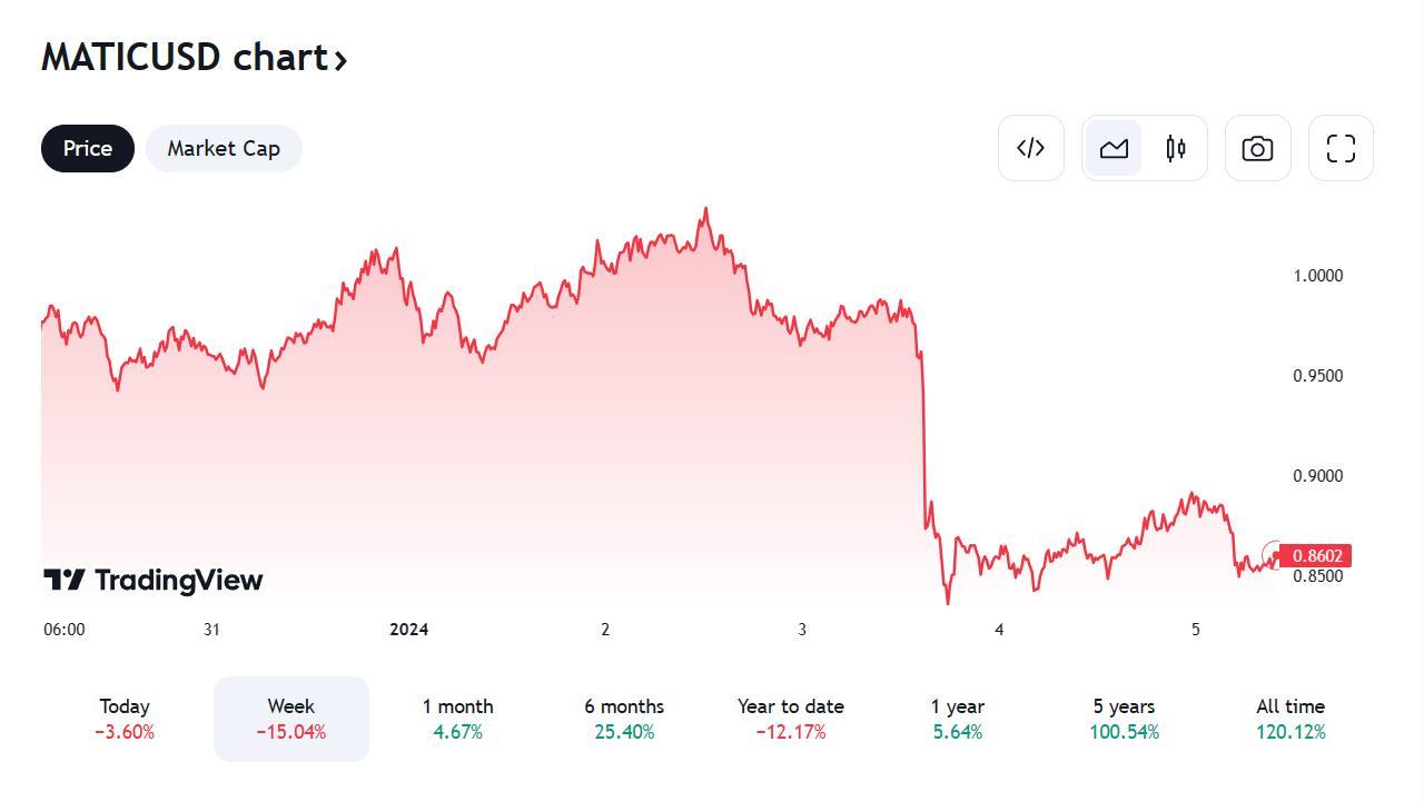 Obecnie notowany na poziomie 0,86 $, Polygon (MATIC) doświadczył mieszanki byczych i niedźwiedzich nastrojów. Drażniące partnerstwo i jego implikacje dla zwiększonej adopcji i użyteczności doprowadziły do pozytywnych spekulacji cenowych, a niektórzy analitycy ustalili cele na poziomie choćby 1,82$.
