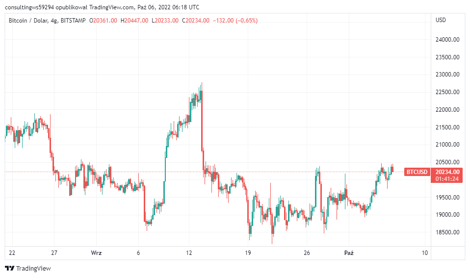 Dane dostarczone przez TradingView pokazują, iż cena Bitcoina (BTC) spadła do dziennego minimum 19 755 USD we wczesnym handlu w środę, ale zdołała odwrócić kurs podczas popołudniowej sesji i wspiąć się z powrotem powyżej 20 000 USD, gdzie byki walczą teraz o kontrolę z niedźwiedziami.