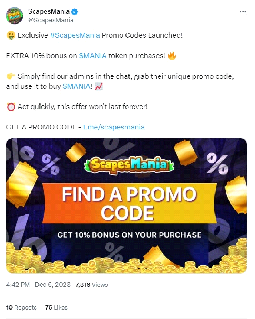 Co więcej, dołączenie do ScapesMania odblokowuje skarbnicę bonusów, łącznie do 127%, wraz z ekskluzywnymi możliwościami, takimi jak odkup i spalanie tokenów oraz staking.