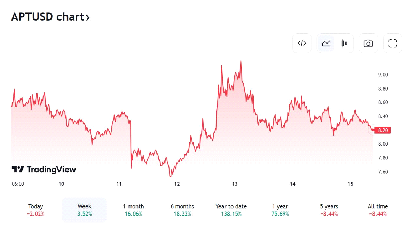 Cena Aptos (APT) odzwierciedlała ten pozytywny trend, odnotowując znaczne zyski po odblokowaniu tokena. Tendencja ta jest sprzeczna ze zwykłą reakcją rynku na zwiększoną podaż aktywów, podkreślając wyjątkową pozycję Aptos (APT) na rynku.