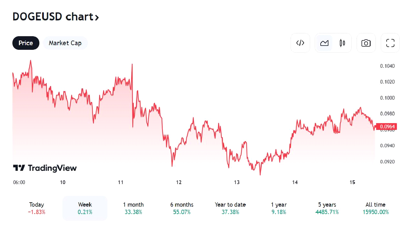 Dogecoin (DOGE) odnotował wzrost o 8,32%, wkraczając w tak zwaną „strefę chciwości”. Wskazuje to na zwiększone zainteresowanie i optymizm wśród inwestorów, ale także sygnalizuje ostrożność, ponieważ może poprzedzać korektę rynkową.