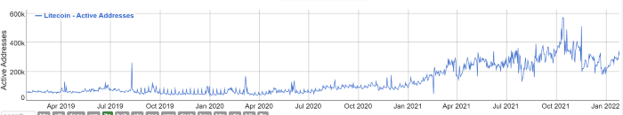Przykład wykresu ilustrującego liczbę aktywnych adresów; źródło: linkOto jeden z kluczowych faktów dotyczący przestrzeni blockchain/kryptowalut: