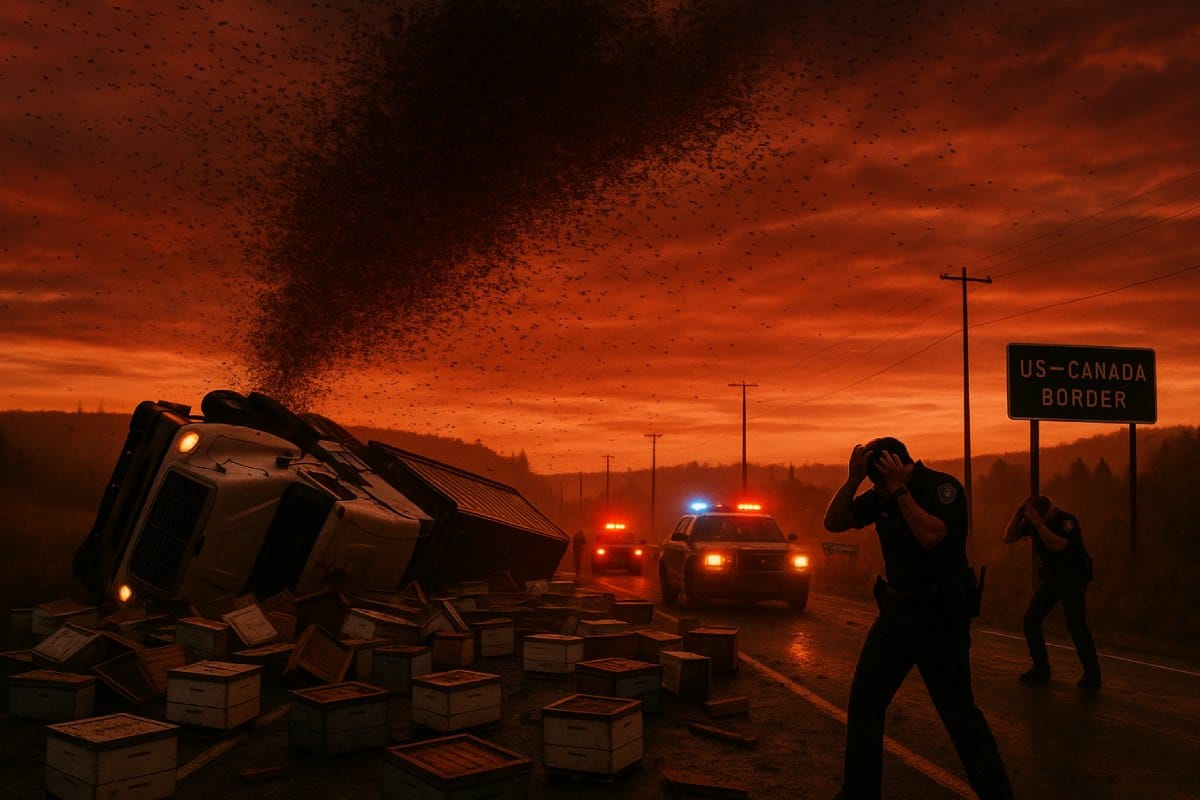 Katastrofa drogowa na granicy USA i Kanady uwolniła 14 milionów pszczół. Ataki na służby, zamknięta droga i dramatyczna akcja ratunkowa.