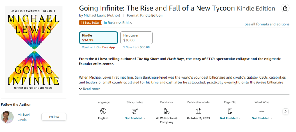 Michael Lewis, znany autor książek takich jak „The Big Short” i „Moneyball” na których podstawie nakręcono kasowe filmy w Hollywood, prowadzi zaawansowane pracę nad książką skupioną wokół postaci Sama Bankmana-Frieda (SBF) i upadku imperium kryptowalut FTX. Książka, zatytułowana „Going Infinite: the Rise and Fall of a New Tycoon”, jest bliska ukończenia i ma rzekomo zostać opublikowana w okolicy procesu SBF który będzie miał miejsce w październiku br.