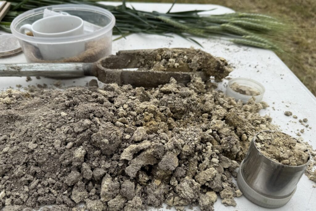 Zawartość azotu mineralnego może się różnić w zależności od typu gleby. W tle klasyczny świder do pobierania prób. fot. M.PiśnyOpis i dostarczenie próbek do laboratorium