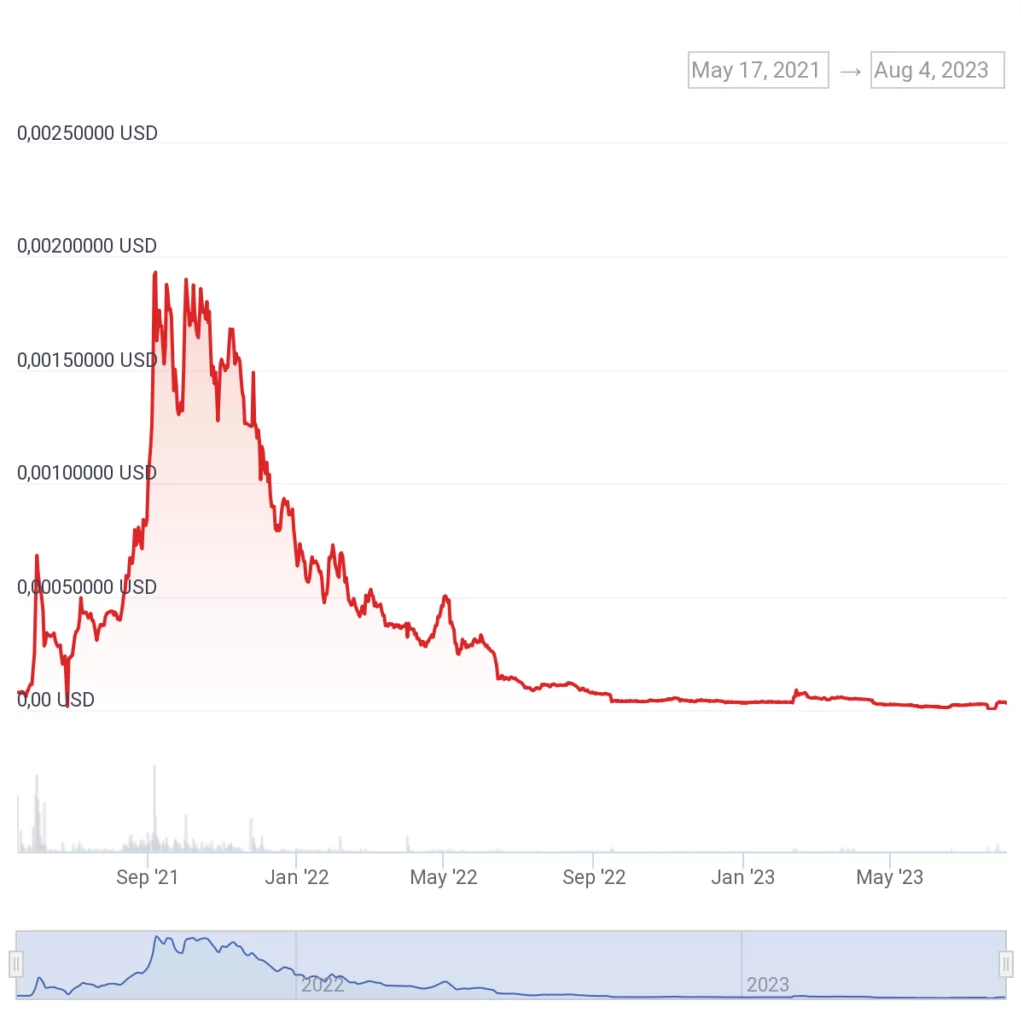 Jednak piękne sny o szybkim wzbogaceniu ostatecznie wyparowały w listopadzie 2021 roku. Wartość Koda spadła o 98,6% od historycznego szczytu i nigdy nie wróciła już do poprzedniego stanu.