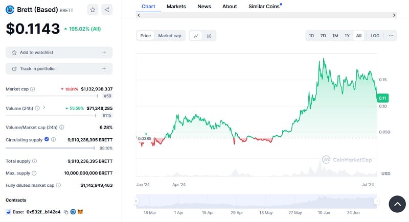 Fot. materiały partneraPokazał to token $BRETT, który wedle wykresu na CoinMarketCap od początku dał już zarobić blisko 200 proc. i to pomimo ostatnich spadków. Naturalnie należy pamiętać, iż przez cały czas są to memecoiny, a więc aktywa o charakterze spekulacyjnym, dla których silne spadki i nagłe wzrosty są normalne. Dlatego przy inwestowaniu w tokeny memowe najważniejsze jest bezpieczeństwo. Można przez to rozumieć odpowiedni procent takich aktywów w portfelu kryptowalutowym.