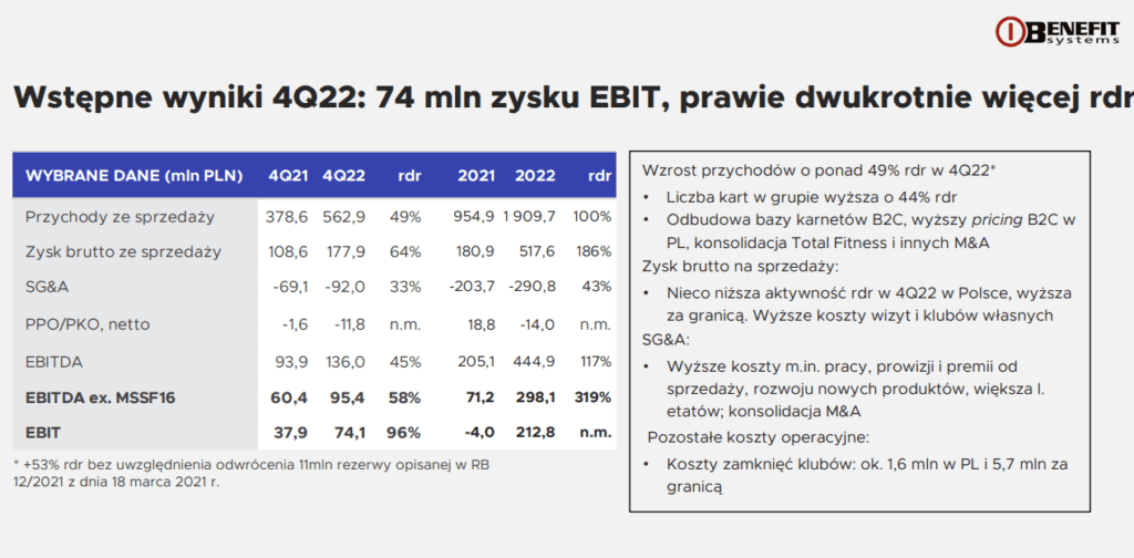 Jakie były wstępne wyniki za IVQ 2022 spółki Benefit Systems?