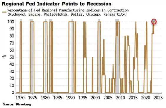 Źródło: ZerohedgeAle jak dotąd rynki ignorowały te dane. przez cały czas to robią. Od czasu rozpoczęcia bessy w ubiegłym roku ich trajektoria nie tylko przekroczyła poprzednie bessy, które zbiegły się z recesją. Według analizy Zerohedge trajektoria w/w danych wyraźnie wyprzedza wszystkie poprzednie bessy sięgające 1929 roku. choćby jeżeli tym razem, w tej recesji (której prawdopodobnie będzie towarzyszyć wysoka inflacja), akcje będą radzić sobie gorzej, przez cały czas są dodatkowo narażone na gwałtowną słabość gospodarki. Fed wie o tym, iż 'nie ma dymu bez ognia’.