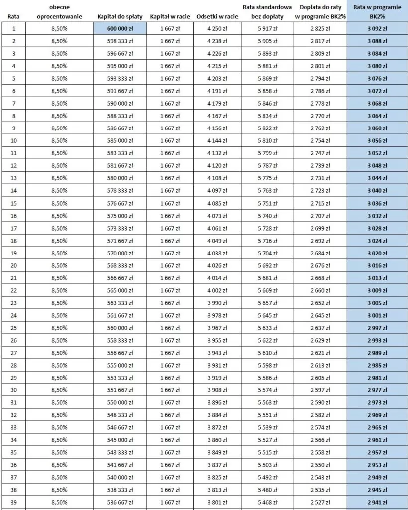 – Obecne rynkowe oprocentowanie takiego kredytu o stałej stopie na rynku – 8.5%