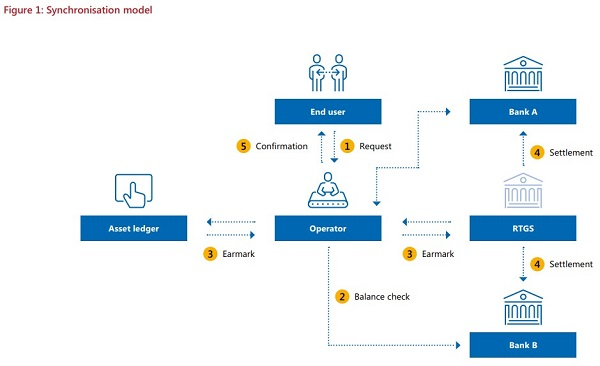 „Zsynchronizowane rozliczenie to warunkowe przeniesienie środków w systemie RTGS oraz aktywów lub środków w innej księdze” – czytamy w raporcie.