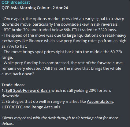 fot. CoinbaseZdaniem ekspertów QCP Capital nowa fala zmienności została wywołana przez rozległe, kaskadowe likwidacje długich pozycji traderów, szczególnie na giełdach preferowanych przez inwestorów detalicznych. W tym przypadku stopy finansowania gwałtownie wzrosły do bezprecedensowego w ostatnich czasach poziomu 77%.