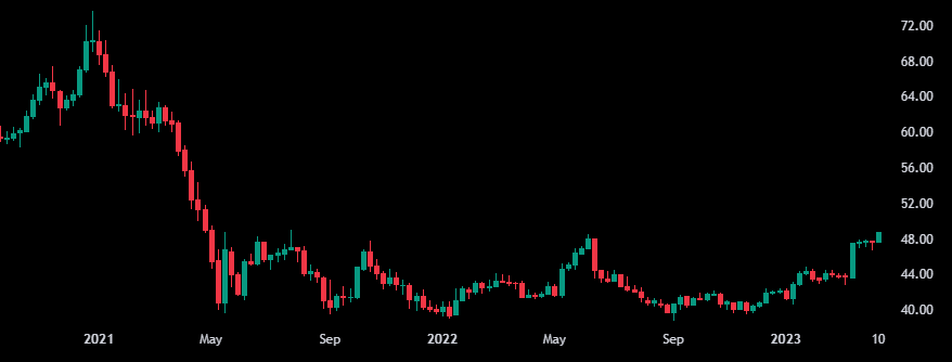 Razem z Bitcoinem rosną też pozostałe kryptowaluty, jednak nierzadko nie aż tak mocno jak sam Bitcoin (są oczywiście liczne wyjątki, tokenów jest zbyt wiele aby wszystkie je policzyć). Dominacja BTC wzrosła do niewidzianych dawno poziomów i stuka powoli w poziom 50% całkowitej kapitalizacji sektora krypto. Na tle głównych kryptowalut pozytywnie wyróżniało się m.in. Ethereum czy…Dogecoin, przy czym ta ostatnia wyłącznie w wyniku spekulacji związanych z dziwnymi i dotychczas niekonsekwentnymi działaniami Elona Muska.