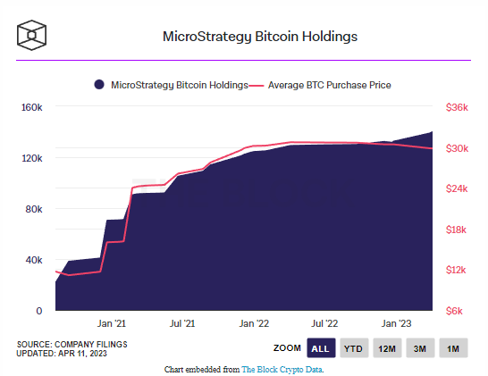Firma MicroStrategy notowała straty na swojej pozycji w BTC aż od czerwca 2022 roku, ale pomogły jej ostatnie zakupy uśredniające cenę posiadanych bitcoinów. Średnia cena zakupu najstarszej kryptowaluty wynosiła dla spółki Saylora ok. 30k BTC. Pomimo ostatnich wzrostów cen Bitcoin ma jednak przed sobą jednak długą drogę do historycznego szczytu z listopada 2021 r., kiedy to płacono aż 69 tys. dolarów za BTC. W takiej sytuacji wartość inwestycji MicroStrategy zwiększyłaby się ponad dwukrotnie, z około 4 mld do aż 8 miliardów dolarów.