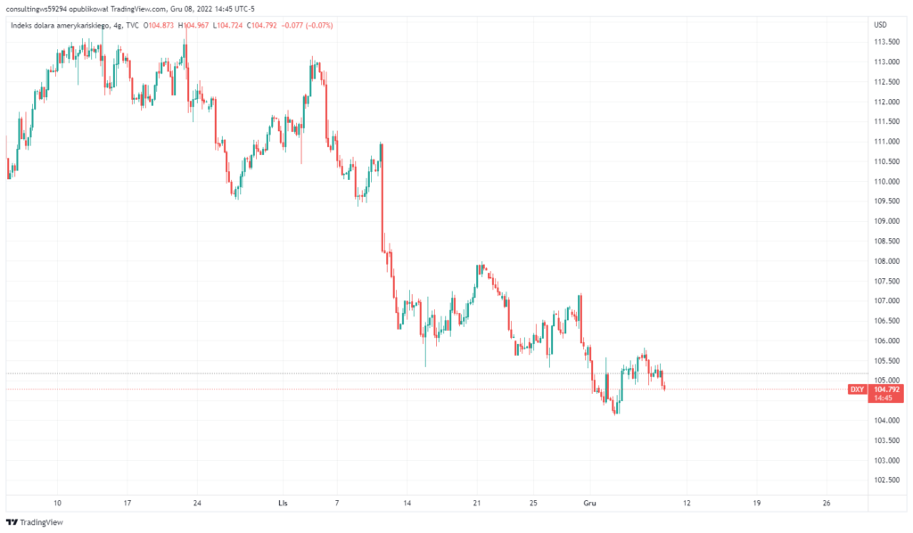 Istotnie, pod koniec sesji giełdowej w USA, DXY wraz ze wzrostem kursu Bitcoina zanurkował do poziomu 104,18.