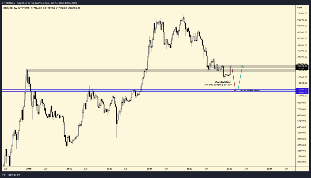 „Pomimo niedawnego odbicia, niedźwiedzi scenariusz nie został unieważniony”, napisał w części kolejnego wątku na Twitterze z 14 stycznia: