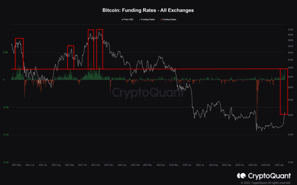 Stopy finansowania na platformach instrumentów pochodnych, napisał w poście na blogu z 14 stycznia, osiągnęły niezrównoważony poziom.