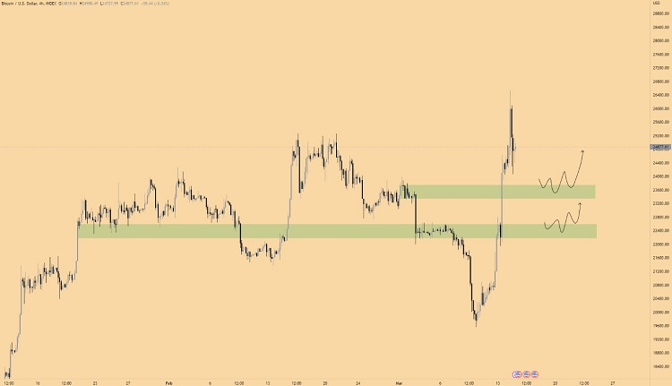 „Pierwszy obszar to około 23,5 tys. USD, w którym możesz zainteresować się pozycjonowaniem w celu potencjalnego ruchu w górę” – powiedzieli.