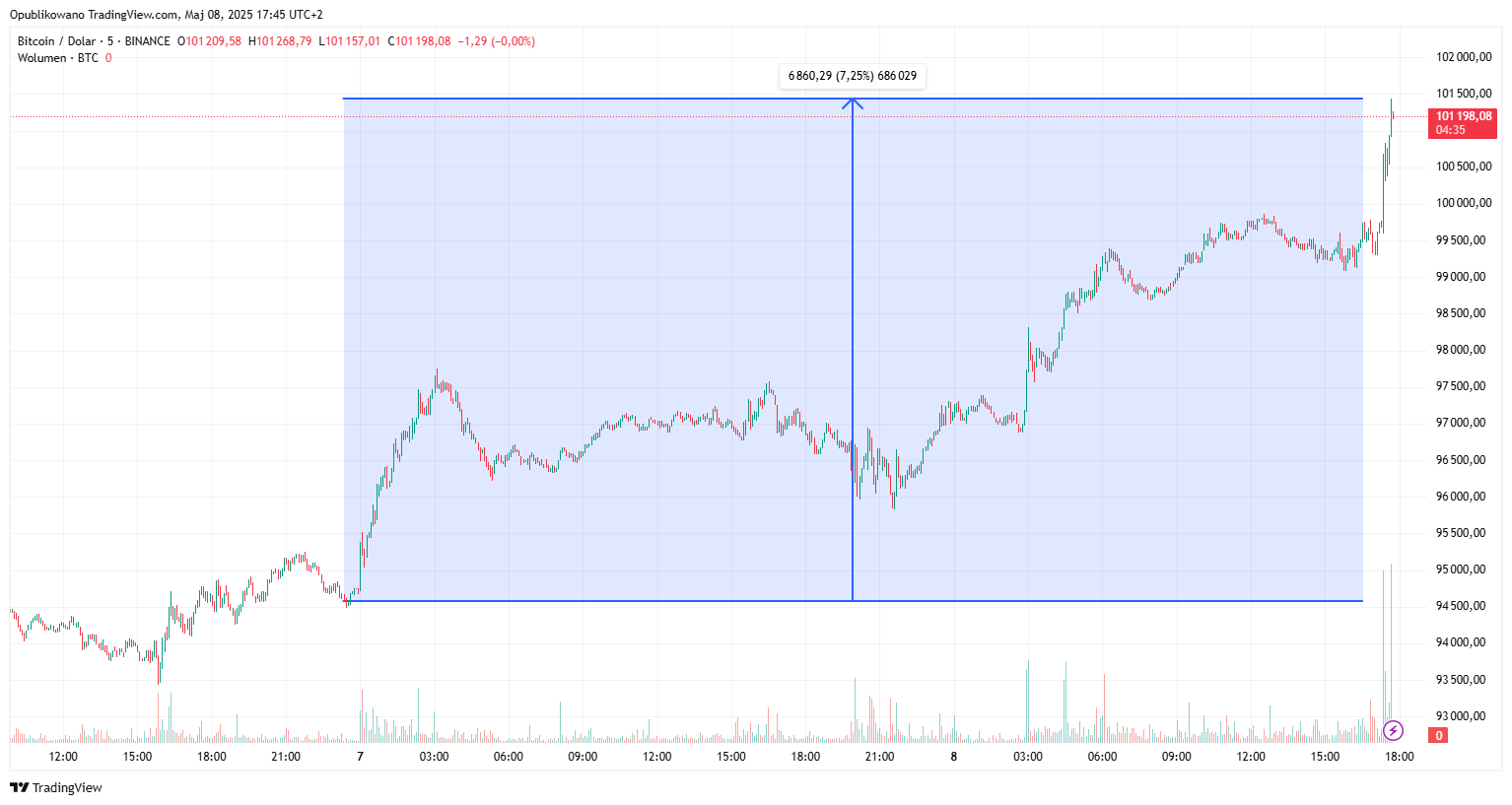 Bitcoin po 94 dniach zdołał odzyskać poziom 100 tys. dolarów na swoim wykresie cenowym.