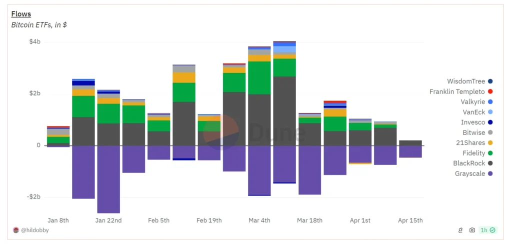 Z kolei przepływy Bitcoina do funduszy ETF przedstawiają się następująco: