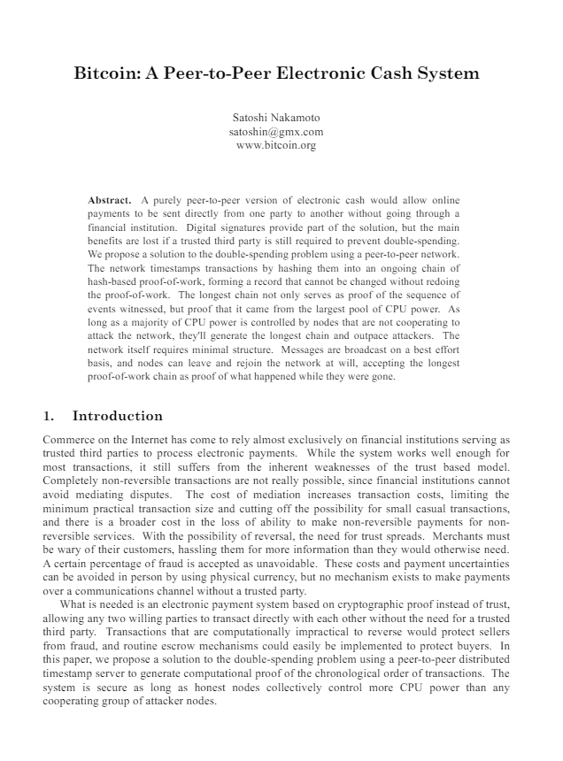 Biała księga Bitcoina, tzn. „Bitcoin Whitepaper”, historyczny dokument opisujący mechanizm działania kryptowaluty został właśnie przywrócony na stronę Bitcoin.org po serii batalii prawnych z Craigiem Wrightem, który bezskutecznie twierdził, iż jest legendarnym, anonimowym twórcą Bitcoina, Satoshim Nakamoto. Informacja ta została ogłoszona na platformie X (Twitterze) przez Hennadii Stepanova, opiekuna strony, który udostępnił ponownie link do pliku PDF z białą księgą do publicznego wglądu.