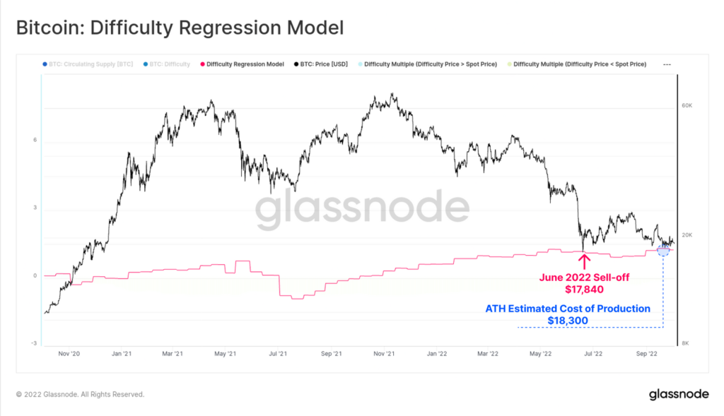 Wiele modeli on-chain zostało zbudowanych by szacować koszty wydobycia Bitcoina, wiele z nich nakierunkowane jest na mierzenie trudności jako bardzo ważnego parametru dla inwestorów w sieć. Najefektywniej trudność wydobucia definiuje tzw. protokół all in hardle (rozwiązanie bloku=zdobycie BTC). Powyższa metryka zbudowana przez Glassnode jako tzw. Model Regresji Trudności liczy logarytmiczną regresję między trudnością sieci a rynkową kapitalizacją Bitcoina. w tej chwili wskazuje ona na bardzo wysoki współczynnik R2, odczyt wynosi w przybliżeniu 0,94. Model w ostatnim czasie przeciął cenę spot przy 17 800 USD, na czerwcowych minimach. w tej chwili wskazuje on poziom 18 300 USD, wciąż poniżej obecnej wyceny Bitcoina. Ostatecznie więc wskaźnik pokazuje, iż stres górników nieco zmalał jednak wciąż utrzymuje się na relatywnie wysokich poziomach. Źródło: Glassnode