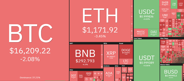 Dane z TradingView pokazują, iż pomimo zakazu handlu kryptowalutami w Chinach, Bitcoin (BTC) nie był odporny na presję wywieraną na tradycyjne rynki finansowe. Najwyższa kryptowaluta spadła pod presją we wczesnych godzinach handlu w poniedziałek i osiągnęła dzienne minimum na poziomie 15 993 USD w pobliżu południa, zanim byki podbiły jej cenę z powrotem powyżej 16 200 USD.