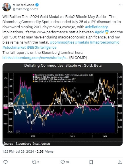 Źródło: https://x.com/mikemcglone11/status/1816796264270377023Bitcoin, zdaniem McGlone-a oferuje wysoki potencjalny zwrot, ale jego wadą jest ekstremalna zmienność i niejasny status prawny. Z kolei złoto służy jako tradycyjne bezpieczne aktywa, które zapewnia stabilność podczas zawirowań gospodarczych. Z drugiej strony złoto oferuje ograniczony potencjał wzrostu. Natomiast S&P 500, według eksperta, zapewnia szeroką ekspozycję rynkową i stały, długoterminowy wzrost. Jednak może być podatny na pogorszenie koniunktury gospodarczej.