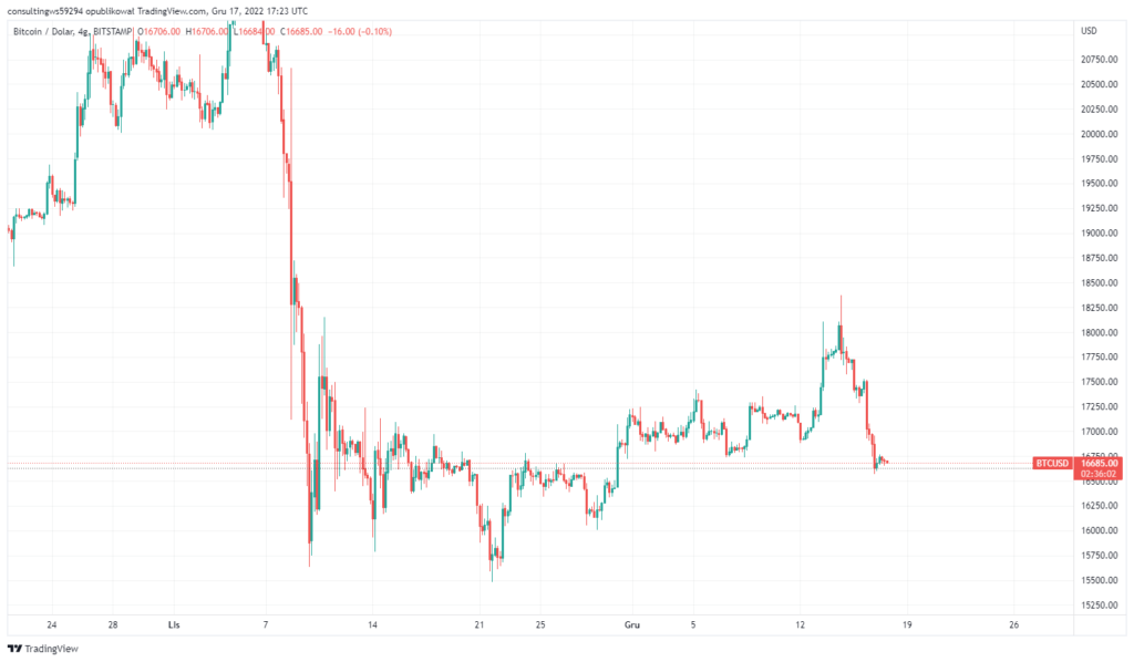 W chwili pisania tego tekstu cena BTC/USD wynosiła około 16 700 USD, jak pokazały dane z Cointelegraph Markets Pro i TradingView.