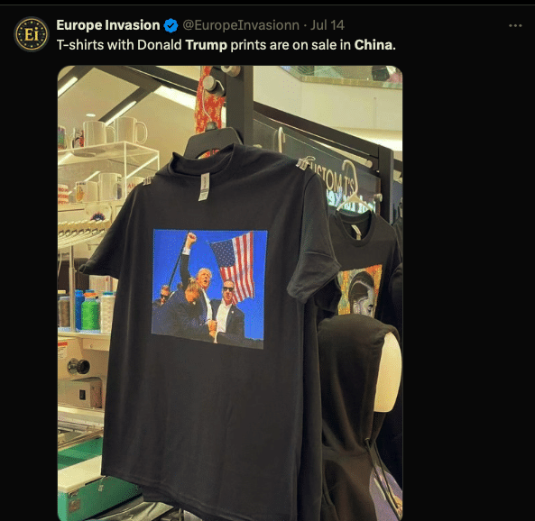 Chińskie platformy e-commerce, takie jak Taobao i JD.com, usunęły ze sprzedaży koszulki z wizerunkiem Donalda Trumpa. Nie chodzi jednak o zwykły towar, tylko ten, na których Trump jest chwilę po zamachu na jego życie. T-shirty te pojawiły się w sprzedaży zaledwie kilka godzin po ataku, który miał miejsce na wiecu w Pensylwanii. Nie jest do końca jasne, dlaczego zostały usunięte. Wiadomo jednak, iż chiński internet jest ściśle kontrolowany, a treści uznawane za „wrażliwe” są rutynowo usuwane.