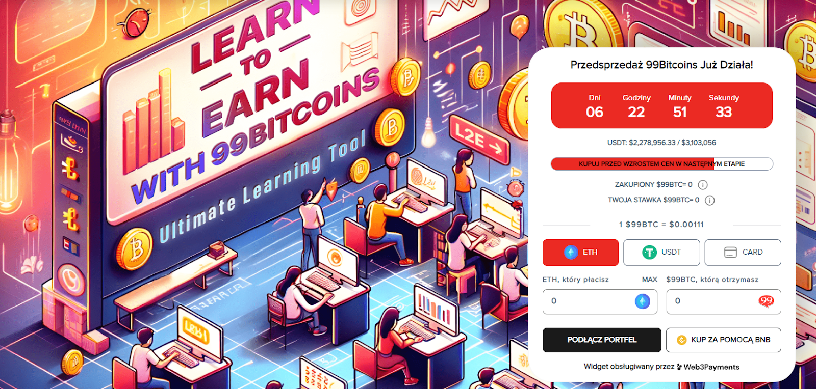 Platforma opiera się na wykorzystaniu BRC-20 i mechanizmie learn-to-earn, czyli ucz się, by zarabiać. Poszerzając wiedzę o rynku krypto, użytkownicy zyskują możliwość jednoczesnego zarabiania. Walutą platformy jest $99BTC, a sam projekt w ramach przedsprzedaży zebrał już ponad 2,2 mln USDT.