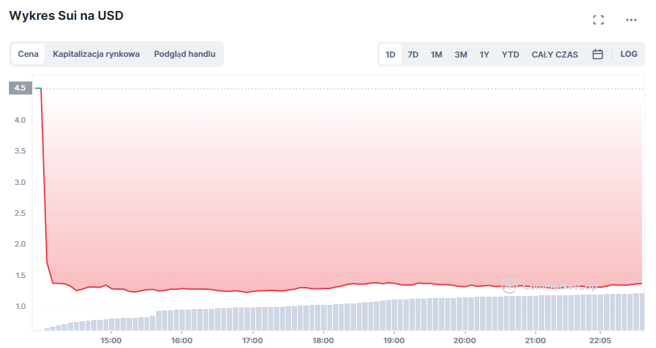 Na chwilę obecną token wyceniany jest na około 1,37 dolara za sztukę, co stanowi bardzo duży wzrost w porównaniu do ceny w przedsprzedaży (SUI można było tam nabyć za zaledwie 0,03 czy choćby 0,01 USD).