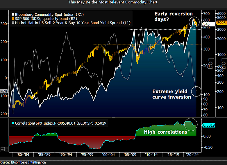 „Normalne odwrócenie trendu może przypominać krach – skłonność korelacji do grawitacji 1 do 1, gdy giełda spada, może być głównym czynnikiem dla wszystkich aktywów w 2023 r., w szczególności towarów”, napisał w części komentarza wraz z wyjaśnieniem wykresu.
